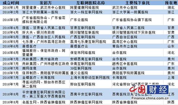 今年已挂牌的17家互联网医院